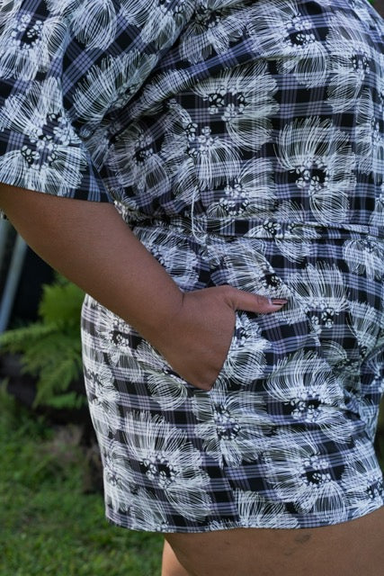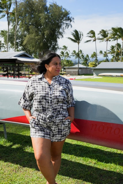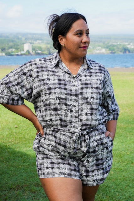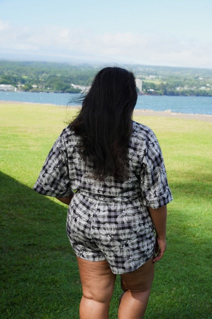 Lehua X Palaka Romper w/ Waist Tie - Black