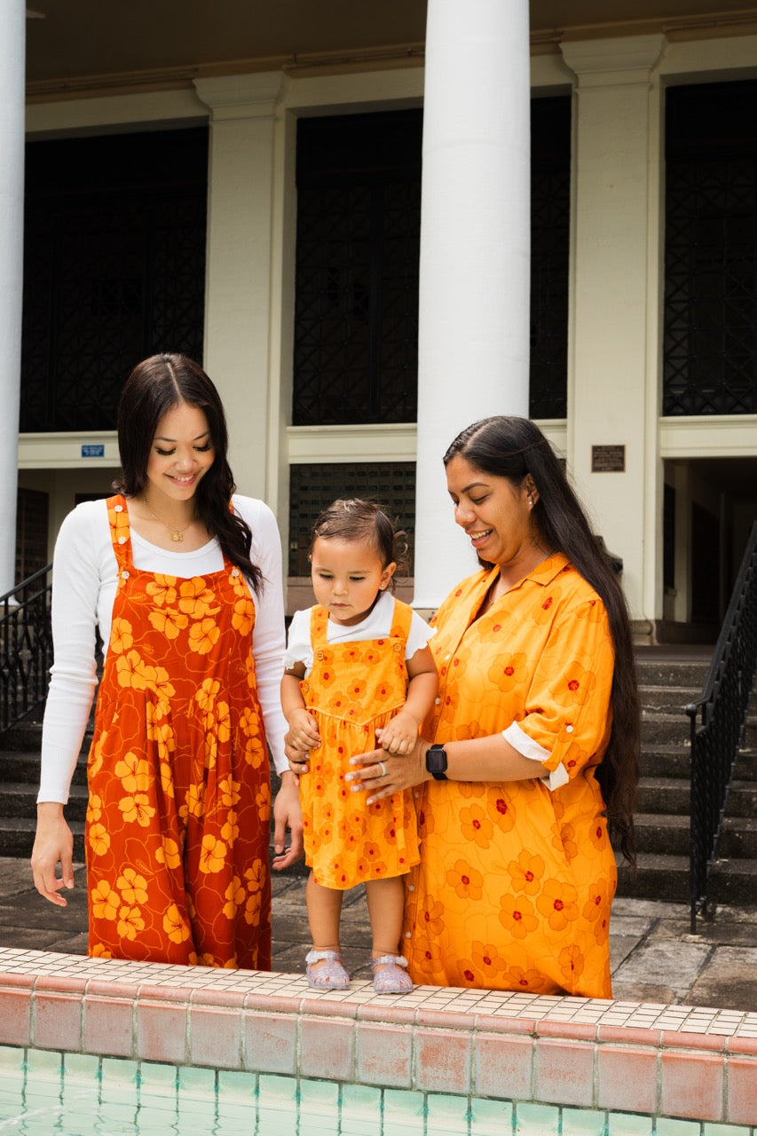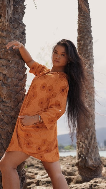 Hibiscus Heaven Long Roll-Up Sleeve Shirt Dress