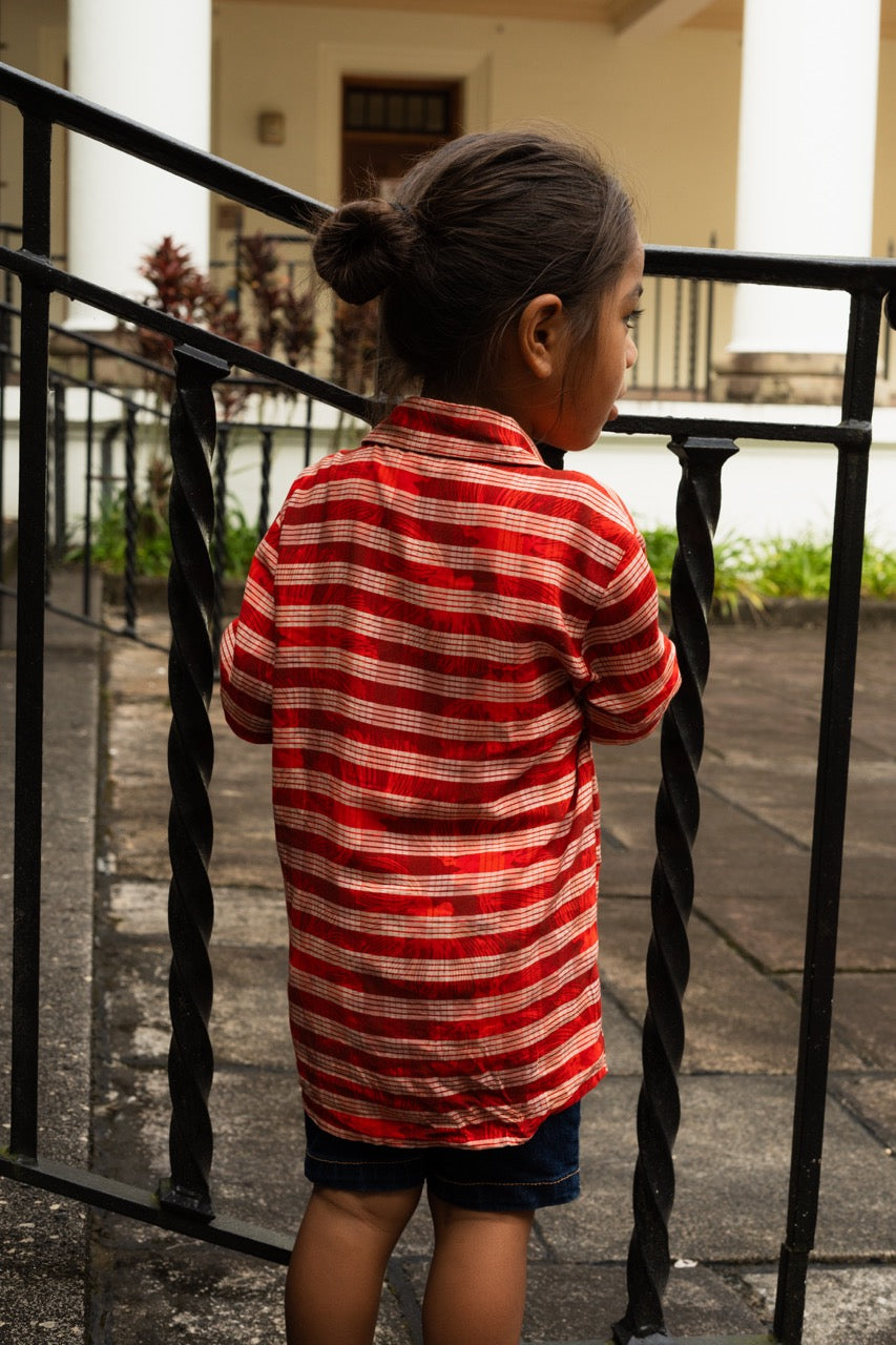 Keiki sized button-up aloha shirts, breathable with a slight stretch and a chest pocket. This aloha shirt is comfortable and stylish!